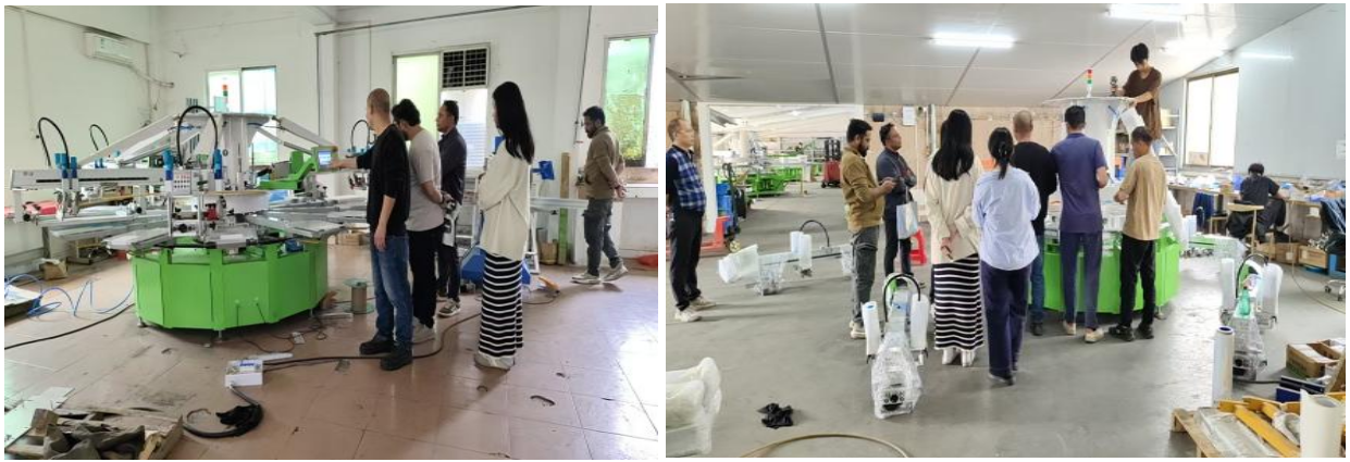 By showcasing the factory's capabilities, the printing technology of our T-shirt screen printing machines, and the professionalism of our engineers, we demonstrated our KC Printing Machinery strengths to our clients. We proved to them our leading position in the T-shirt screen printing machinery industry, as well as in related equipment such as exposure machines, infrared tunnel ovens, and drying chambers.