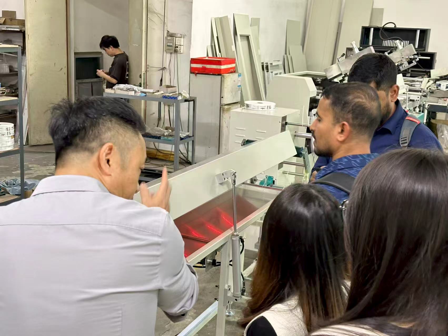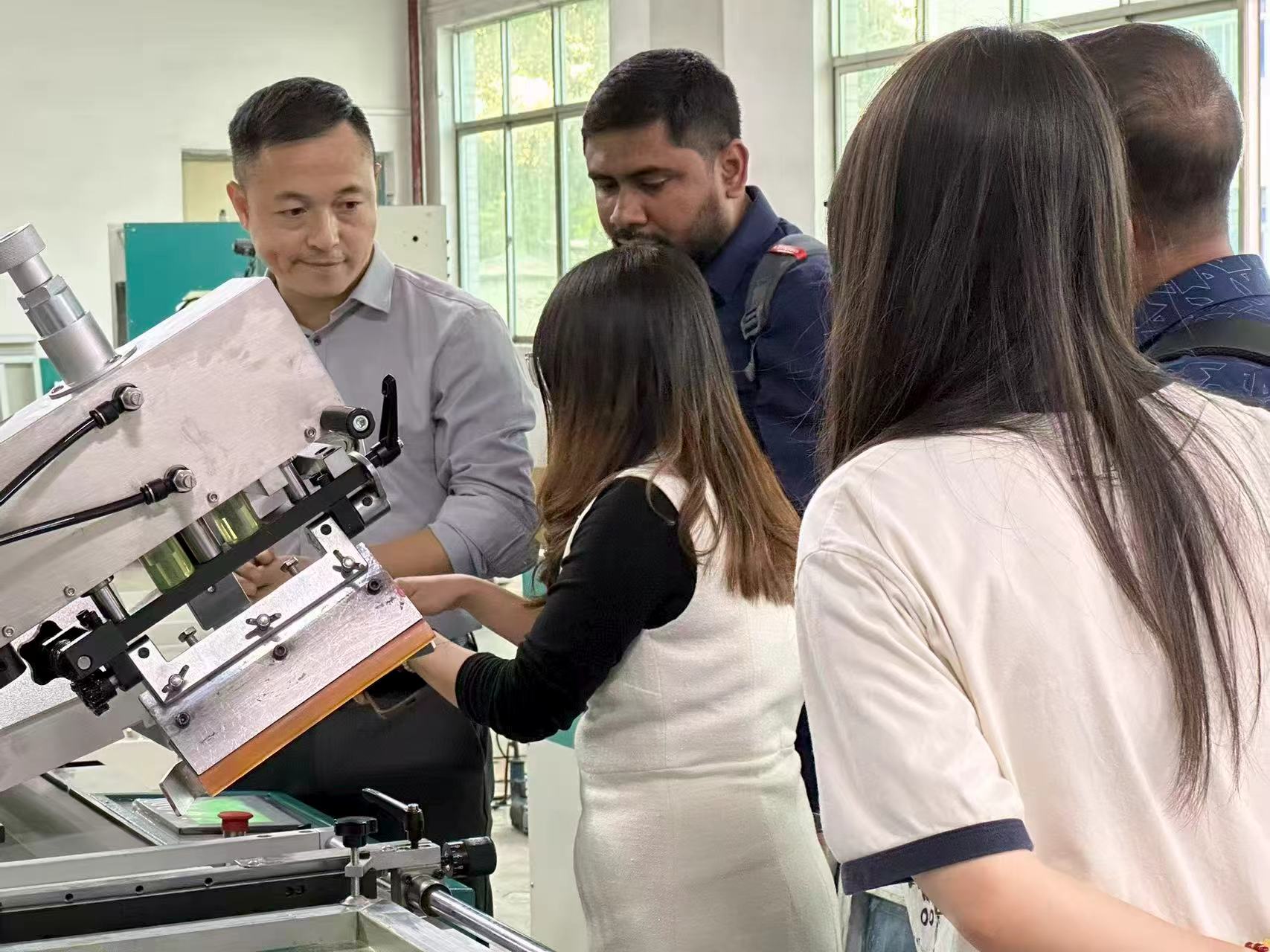 On December 12, 2025, two experienced Bangladeshi clients visited our company to conduct an on-site inspection and in-depth discussions regarding our automatic silkscreen ribbon printing machine. Our sales and technical team accompanied them throughout the visit, providing workshop tours, equipment demonstrations, and technical Q&A sessions, allowing the clients to fully experience the product's strength and quality advantages, laying a solid foundation for future cooperation.